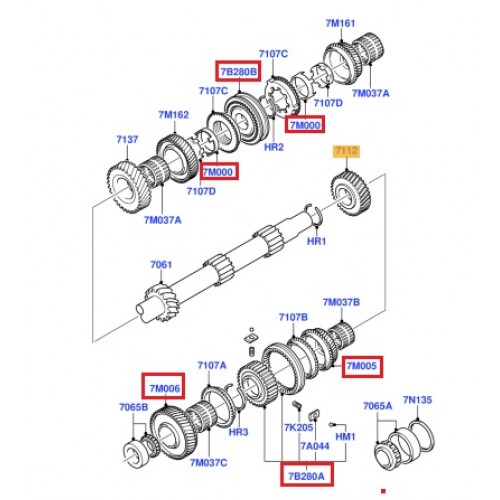 Pinion marsarier,sincron viteza 5 si R,ansamblu sincron viteza 1 si 2,inel-blocare sincron 3,4,5, ansamblu con si pinion viteza 5,pinion ghidare R VXT75