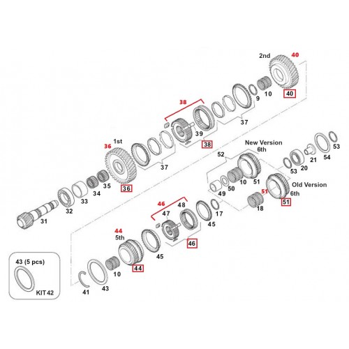 44.Pinion treapta 5 pe ax secundar, 41 si 44 dinti, pentru cutie de viteze manuala Fiat Ducato 3.0 M40 2006 6 trepte.
